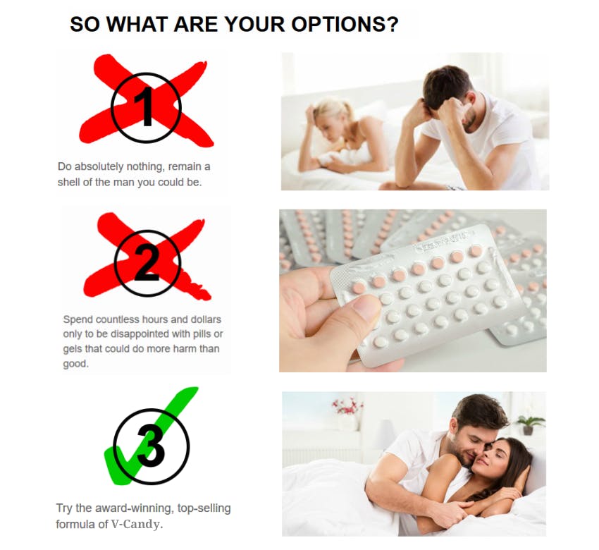 Come on, think about it. V-Candy has been extensively researched, evaluated, clinically tested and proven effective. It has worked for men around the globe.